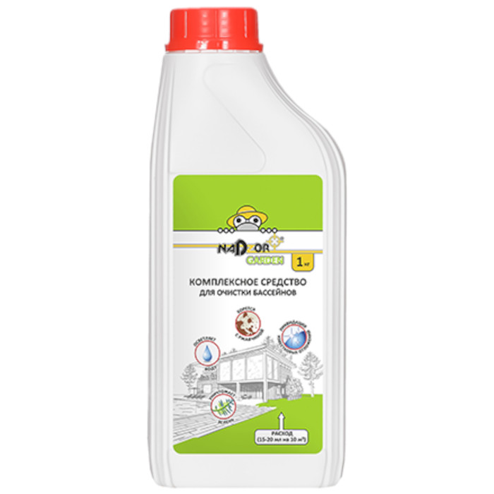 Концентрированное средство комплексной очистки бассейна используется для уничтожения водорослей в бассейнах и предупреждения их образования, устранения помутнения воды, предотвращения образования известковых отложений на твердой поверхности чаши бассейна и оборудования, предотвращения появления ржавчины и ее удаления.