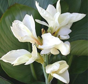Канна Эрмин представляет собой куст высотой от 60 до 90 см, украшенный крупными белыми цветами. Листья у этого сорта широкие, слегка заостренные и имеют насыщенный зеленый цвет. Цветение начинается с нижних цветков, что придает растению особую декоративность. Канна Эрмин прекрасно растет на солнечных участках, защищенных от холодных ветров. Она великолепно смотрится как в групповых посадках, так и в одиночных, а также подходит для озеленения в качестве горшечного растения.