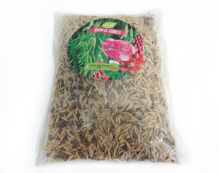 Вико - овсяная смесь - однолетние бобово-злаковые растения. Обогащает почву азотом, фосфором и калием, препятствует вымыванию гумуса, хорошо рыхлит и структурирует землю. Растения не требовательны к почве, хорошо переносят засуху, затенение, холод (выдерживают заморозки до 5-7°C.