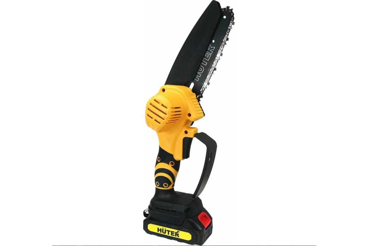 Аккумуляторная цепная пила удобно лежит в руке благодаря прорезиненной рукоятке. Для безопасности оператора предусмотрены защита от случайного пуска и защитный кожух цепи. В модели Huter ELS-20Li длина шины составляет 150 мм под цепь из 36 звеньев с шагом ¼. Ее необходимо смазывать каждые 10 - 15 пропилов, т.к. в инструменте отсутствует автоматическая смазка цепи.