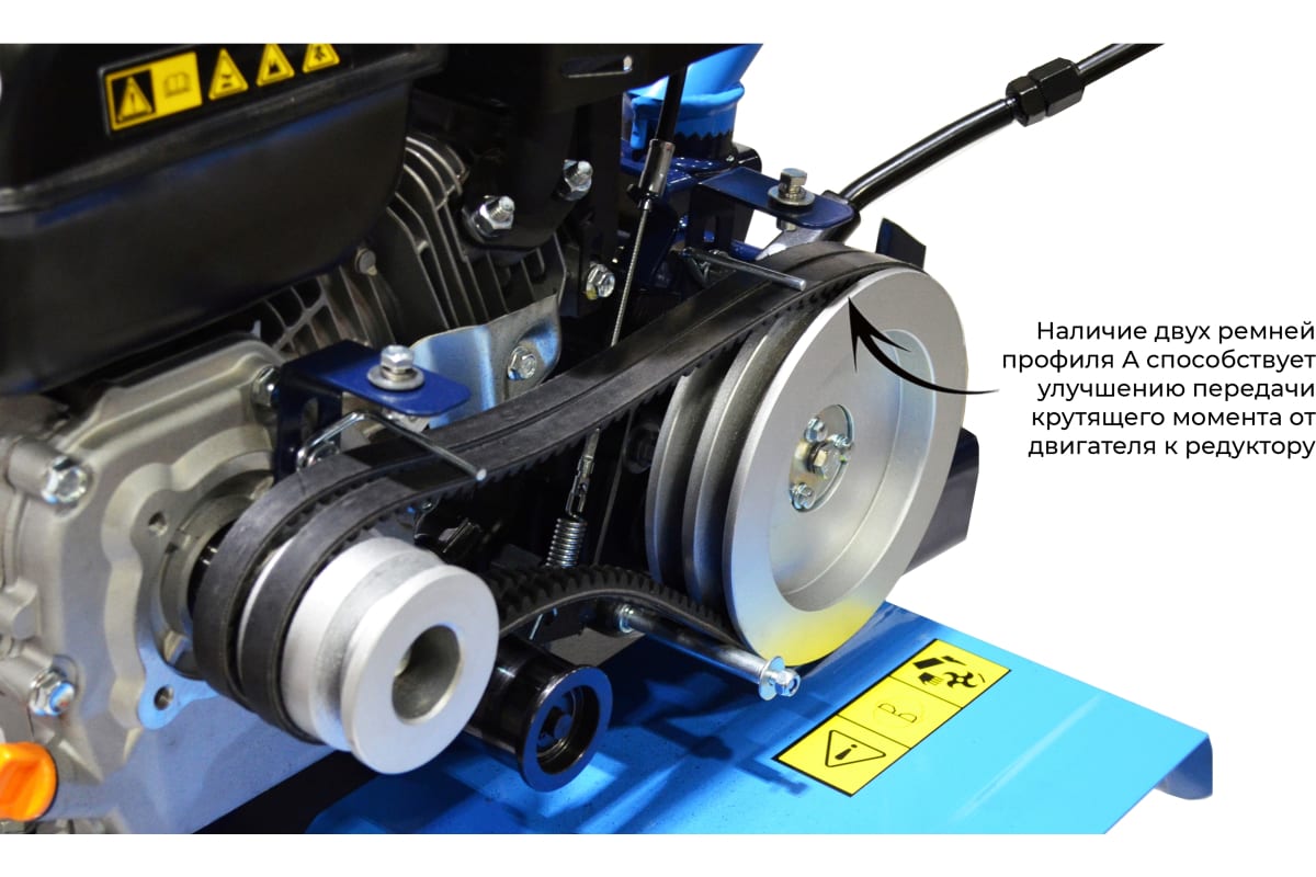 Особенностью является наличие реверса, который позволяет быстро менять направление движения мотоблока. Это особенно важно при работе на узких участках или в условиях ограниченного пространства.