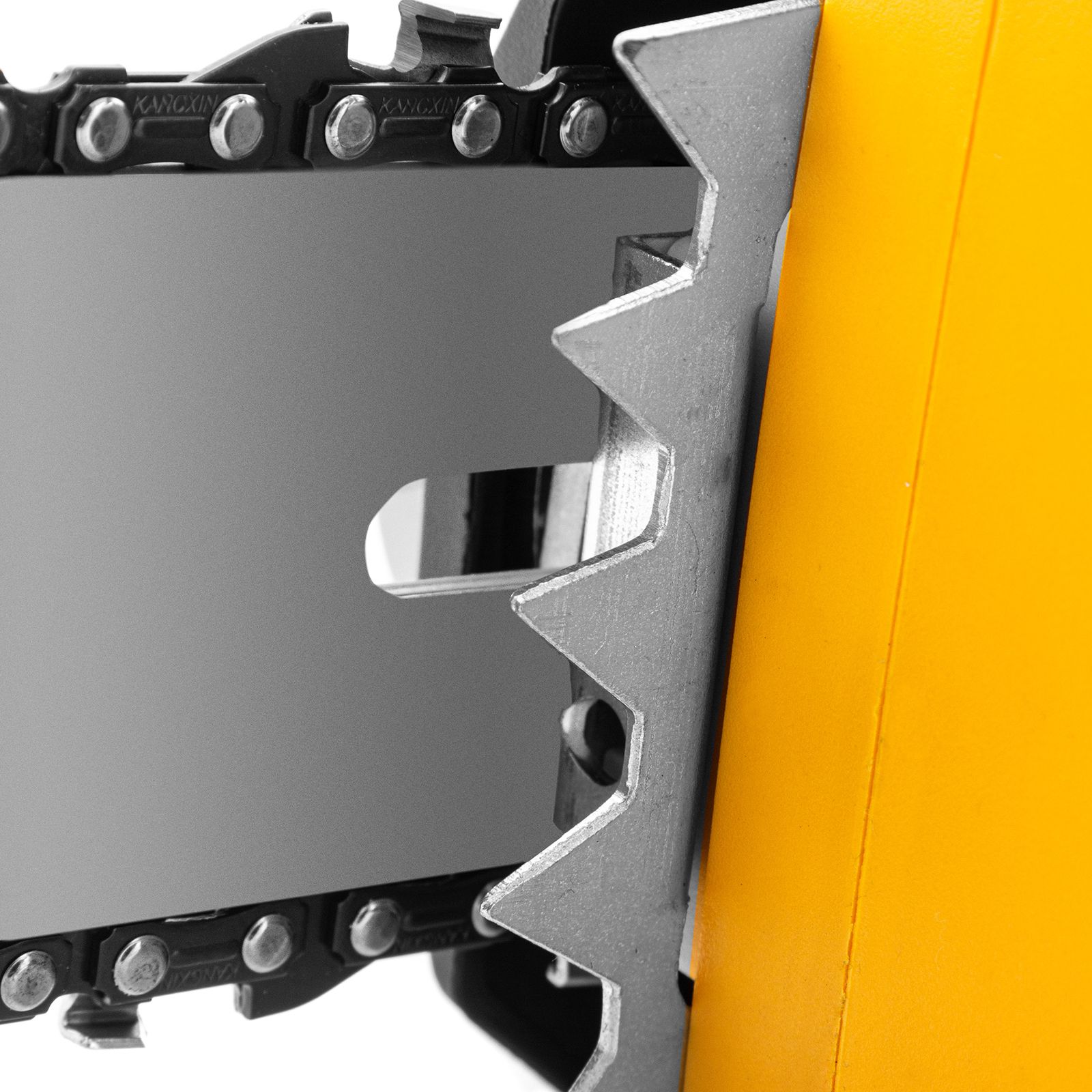 Удобное использование — зубчатый упор не соскальзывает с древесины, надежно фиксируя пилу и уменьшая нагрузку на руки пользователя, что особенно удобно для работы с крупными бревнами или деревьями.