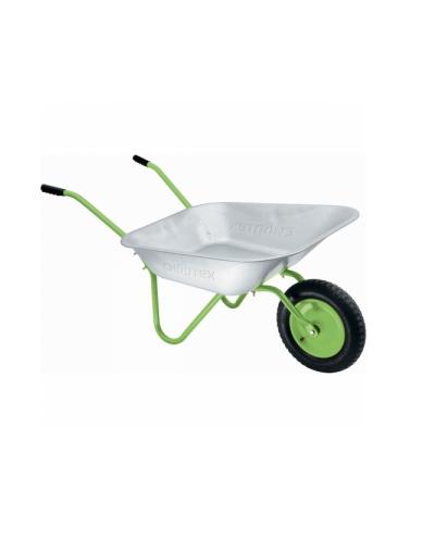 Тачка садовая одноколесная облегченная Сибртех 68961 используется для перевозки различных грузов. Кузов выполнен из оцинкованной стали, что повышает стойкость к коррозии и прочность. Пневматическое колесо с камерой повышают устойчивость, шариковые подшипники облегчают передвижение тачки.