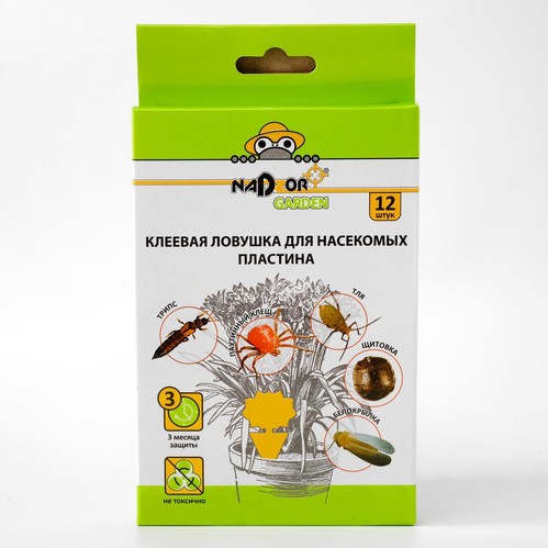 Клеевая ловушка для уничтожения комнатных насекомых - вредителей, путем механического отлова на клеевой слой. Экологически безопасна и простая в применении. Особенностью ловушки является ее желтый цвет и атрактант (аромапривлекатель). Вредители, привлечённые жёлтым цветом и аттрактантом, приклеиваются к ловушке без использования каких-либо ядохимикатов.
