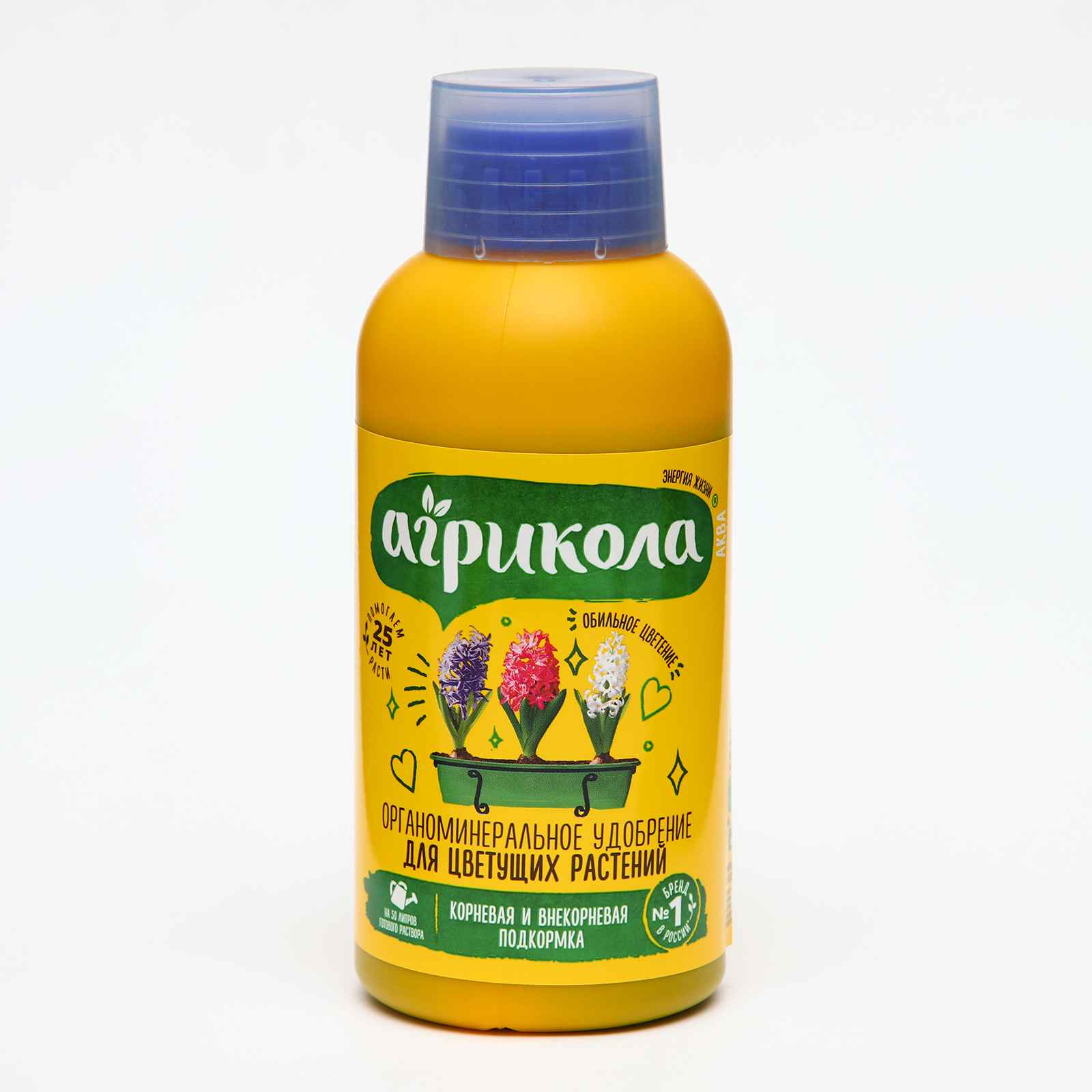 Агрикола Аква для цветучих растений.Состав: (МРКЗ,5:4:5+микроэлементы), гуматы 0,8%.Флакон 250 мл.Содержит основные элементы питания (азот, фосфор и калий), микроэлементы в особой хелатной форме и гуминовые биологически активные вещества – Энергены. Повышают энергетику клеток растения, усиливают усвояемость элементов питания, мобилизуют иммунную систему растения, а также повышает устойчивость растения к неблагоприятным факторам. Используется как для корневой, так и для вн екорневой подкормки. При норме разведения 5-10 мл удобрения на 1 л воды, флакона объемом 250 мл достаточно для получения 25-50 л подкормочного раствора.