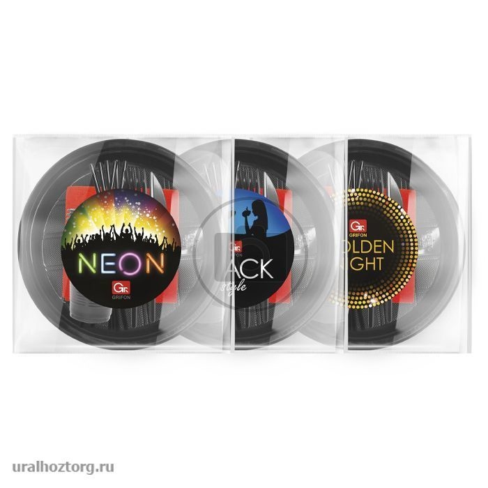 Набор для пикника на 6 персон (стакан, вилка, тарелка, нож, салфетка, трубочка) `Grifon Black`