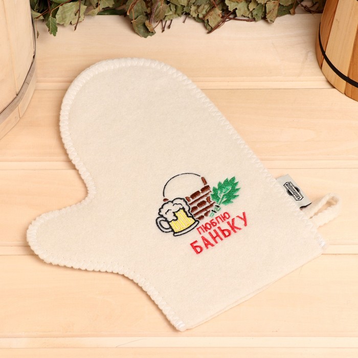 Рукавица для бани с вышивкой "Люблю баньку", первый сорт