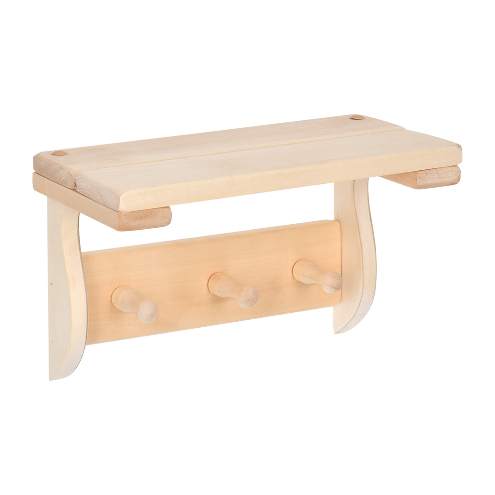 Полка с вешалкой, 3 рожка 29х18х14 см, липа