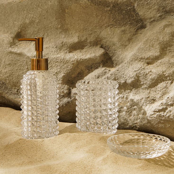 6073196 Набор для ванной комнаты «Натура», 2 предмета (дозатор 400 мл, стакан, на подставке),зеленый