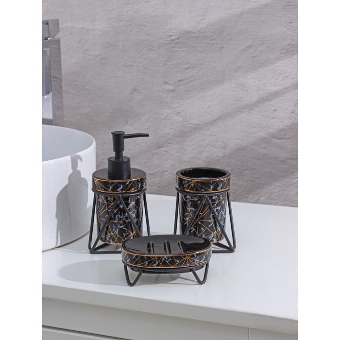 Набор для ванной комнаты Доляна Геометрика, 3 предмета,(мыльница, дозатор для мыла, стакан),чёрный