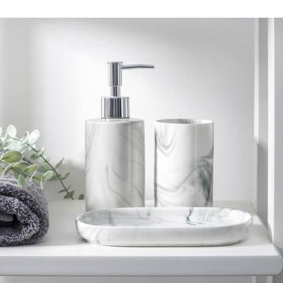 Набор для ванной комнаты SAVANNA Monro, 4 предмета (мыльница, дозатор 450 мл, стакан, баночка),белый