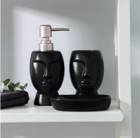 Набор для ванной SAVANNA «Вуду», 3 предмета (мыльница, дозатор для мыла, стакан), чёрные