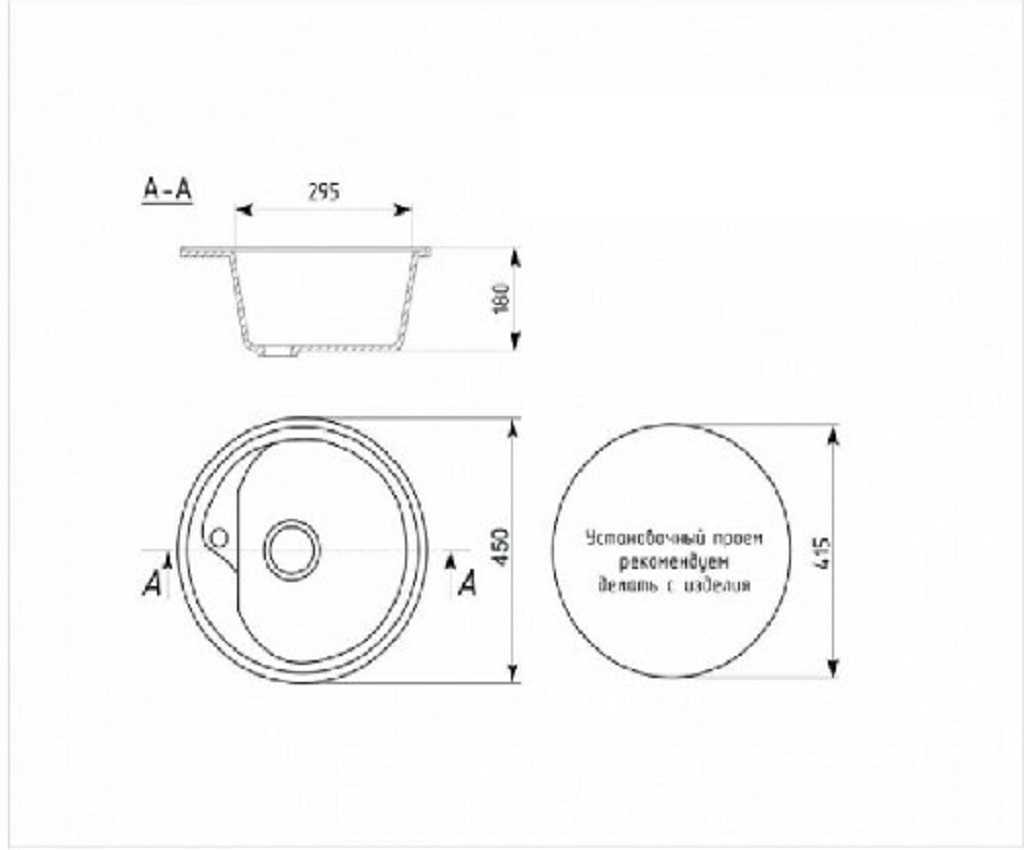 AG1C10 Мойка кухонная Agata, бежевая, круглая, врезная, кварцевая 450*190*450мм