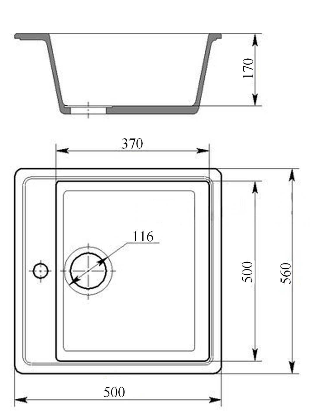 V-205 Мойка кухонная Vladiks,правая,прямоуг, накладная,нерж. матовая 0,4 мм без сифона 600*500*150мм