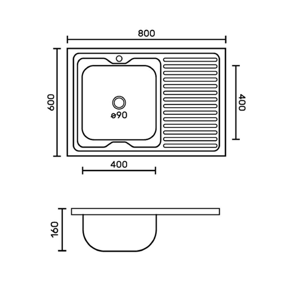 Мойка накладная FABIA 800*600 левая, нержавеющая сталь