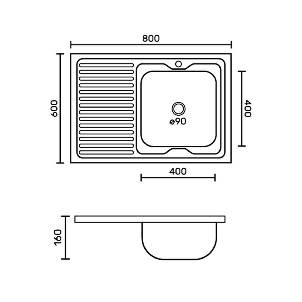 Мойка накладная FABIA 800*600 правая, нержавеющая сталь
