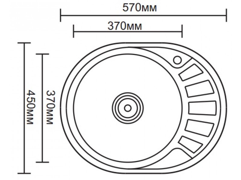 Мойка кухонная Vladiks 45*57, правая, овальная, врезная, нерж, с сифоном, 570*450*160 мм