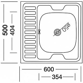V-205 Мойка кухонная Vladiks,правая,прямоуг, накладная,нерж. матовая 0,4 мм без сифона 600*500*150мм