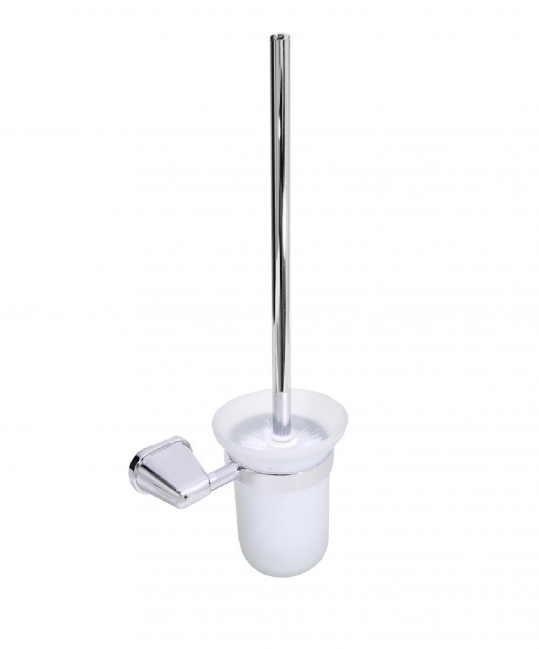 Настенный туалетный ерш со стеклянным стаканом и металлической подставкой.