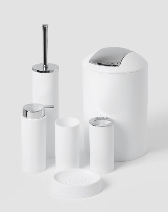 Набор аксессуаров организует пространство и станет стильным украшением Вашей ванной комнаты. За счет сдержанного дизайна данный набор в ванную подойдет к любому дизайну ванной комнаты. Набор состоит из 6 предметов.