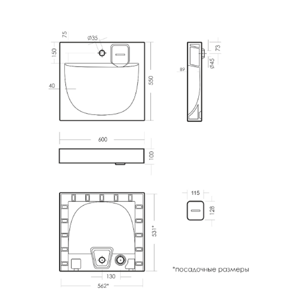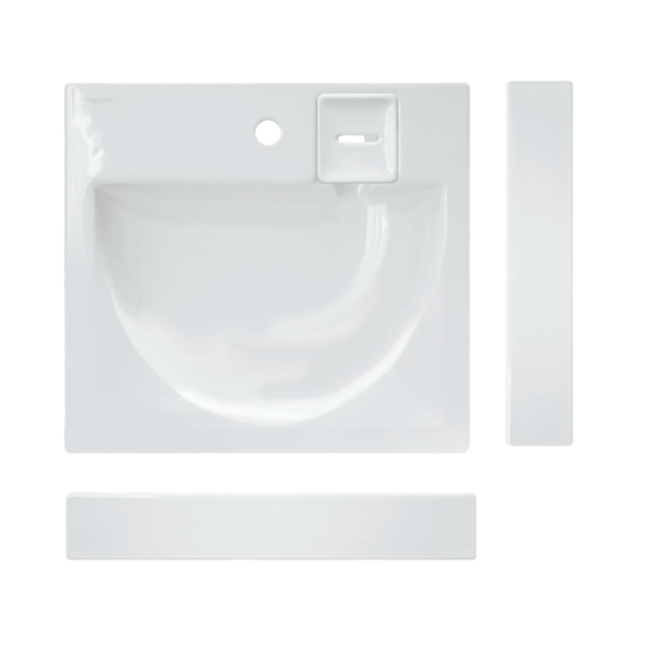 Отличает умывальник не только особенность установки, но и керамическая мыльница, удобное для уборки сливное отверстие, стильная и комфортная в эксплуатации округлая форма чаши.