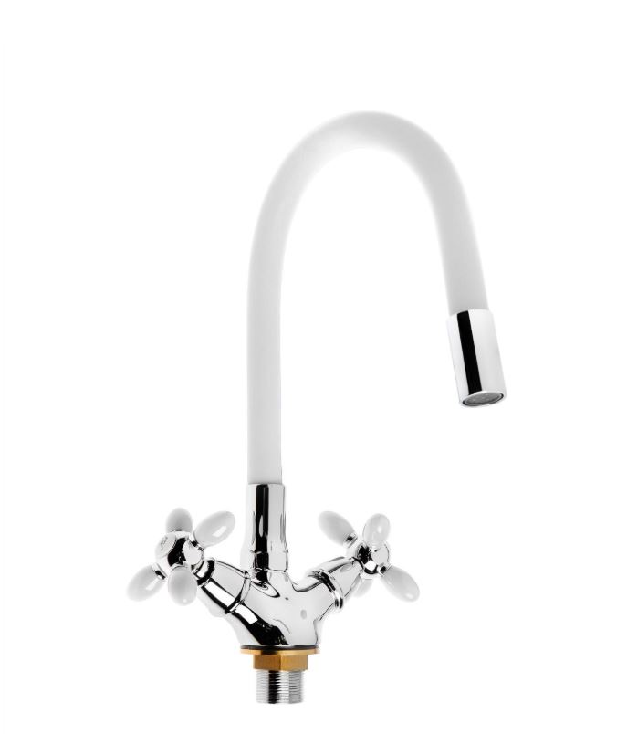 A4882G-1 Смеситель для кухни Accoona, двухвентильный, с гибким изливом, белый