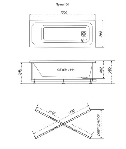 Ванна стальная Reimar 1500*700*400 с полимерным покрытием белая орхидея без ранта +опорная подставка