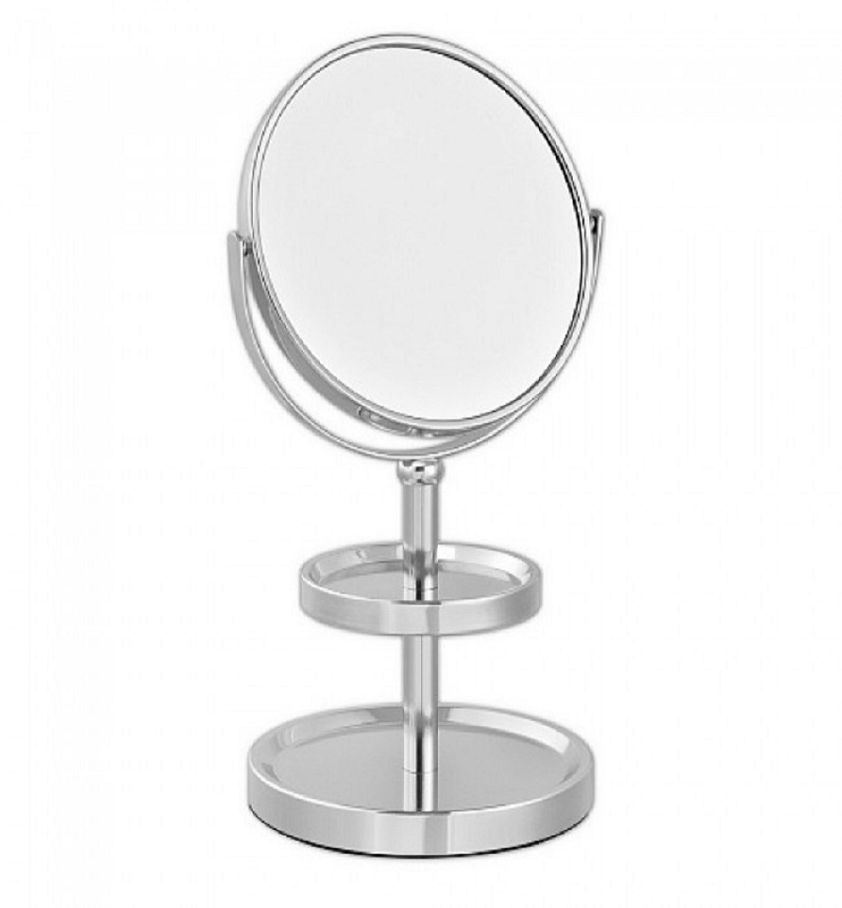 Зеркало косметическое настольное с полочками для украшений , нержавейка хромированная.