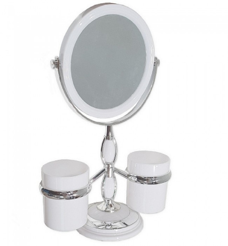 75275 Зеркало косметическое Санакс, настольное, 2 стакана, подсветка, Ø120мм