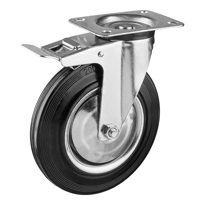 Опора колесная большегрузная 125мм поворотная с торм., платф. крепл. 100кг