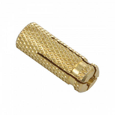Анкер забивной латунный LAZ представляет собой полый цилиндр с внутренней метрической резьбой, на внешней поверхности которого имеются специальные насечки и прорези, которые образуют 4-х сегментную распорную зону. Анкер изготовлен из латуни, без дополнительного покрытия. Предназначен для крепления инженерных сетей и оборудования (водопроводов, воздуховодов, фанкойлов, электрики и т.д.), ограждающих конструкций, декоративных конструкций к основаниям из полнотелого кирпича, бетона, природн ого камня. Возможно применение для временного крепления, например, строительных лесов и подмостей, опалубки. Используется совместно с резьбовыми шпильками и болтами.