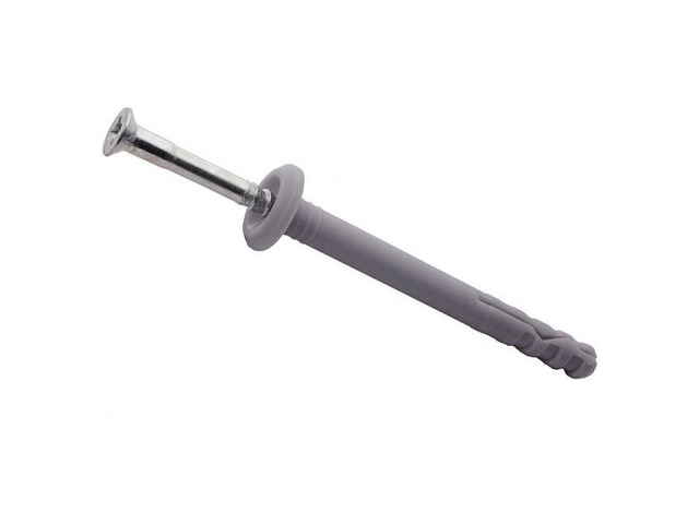 Дюбель-гвоздь с грибовидной манжетой имеет цилиндрическую головку дюбеля, электрооцинкованный шуруп и рекомендуется для крепления тонки ля крепления тонких профилей.