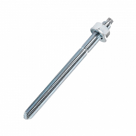 Шпилька резьбовая DA с шестигранной головкой, полной метрической резьбой и заточкой 2х45°, дополнительно комплектуется гайкой и шайбой. На резьбе имеется специальная риска, с помощью которой возможно контролировать глубину установки при монтаже. Шпилька изготовлена из углеродистой стали с антикоррозионным цинковым покрытием. Применяется совместно с инжекционными массами и химическими капсулами.