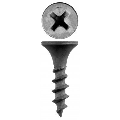Саморез СГМ имеет потайную головку с крестообразным шлицем PH2, резьбу с мелким шагом и острый наконечник. Изготовлен из углеродистой стали с фосфатным или оксидным покрытием черного цвета. Предназначен для потайного крепления гипсокартонных листов (ГКЛ), фанеры, OSB и других листовых материалов к металлическим основаниям.
