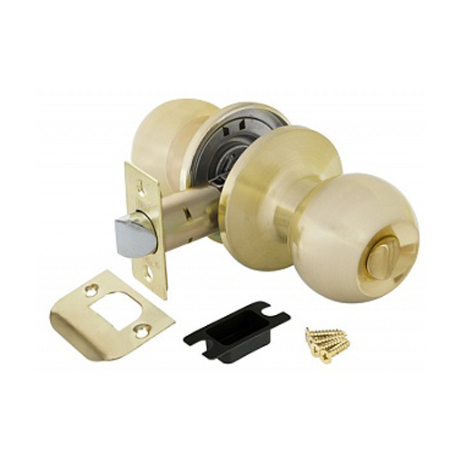 Комплект дверных ручек с защелкой (KNOB) Punto коллекции SIMPLE LIVING 6072 SB-B предназначен для установки в межкомнатные двери толщиной 35-45 мм. Подходит для дверей правого и левого открывания. Гальваническое покрытие прошло тест на устойчивость к коррозии в соляном тумане - более 72 часов. Ресурс работы ручек-защелок более 150 000 циклов открывания/закрывания, что гарантирует безотказную работу двери более чем на 15 лет. Бэксет защелки регулируется - 60/70 мм. Материал изготовления: сталь. Модификация: фиксатор. Цвет: матовое золото. Комплектация: защелка, ответная планка с декоративной заглушкой, дверные ручки, крепежная фурнитура, шаблон и инструкция по установке.