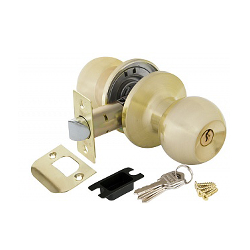 Комплект дверных ручек с защелкой (KNOB) Punto коллекции SIMPLE LIVING 6072 SB-E предназначен для установки в межкомнатные двери толщиной 35-45 мм. Подходит для дверей правого и левого открывания. Гальваническое покрытие прошло тест на устойчивость к коррозии в соляном тумане - более 72 часов. Ресурс работы ручек-защелок более 150 000 циклов открывания/закрывания, что гарантирует безотказную работу двери более чем на 15 лет. Бэксет защелки регулируется - 60/70 мм. Материал изготовления: сталь. Модификация: ключ/фиксатор. Цвет: матовое золото. Комплектация: защелка, ответная планка с декоративной заглушкой, дверные ручки, крепежная фурнитура, 3 ключа, шаблон и инструкция по установке.