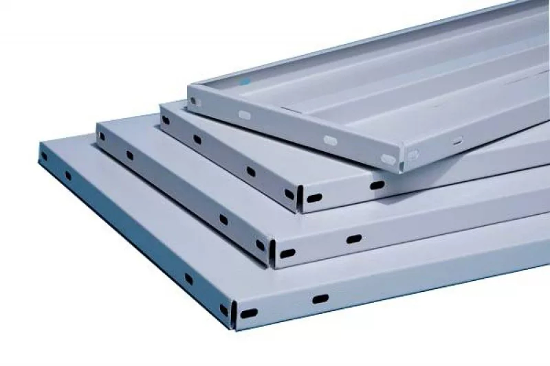 Полка прямая для стеллажа — один из элементов сборной системы хранения. Представляет собой прямоугольный металлический лист с загнутыми краями. Предназначена для установки на каркас стеллажа. Полка оснащена монтажными отверстиями, крепится болтами и гайками. Изготовлена из прочного материала, поэтому выдерживает большой вес. Поверхность изделия окрашена.