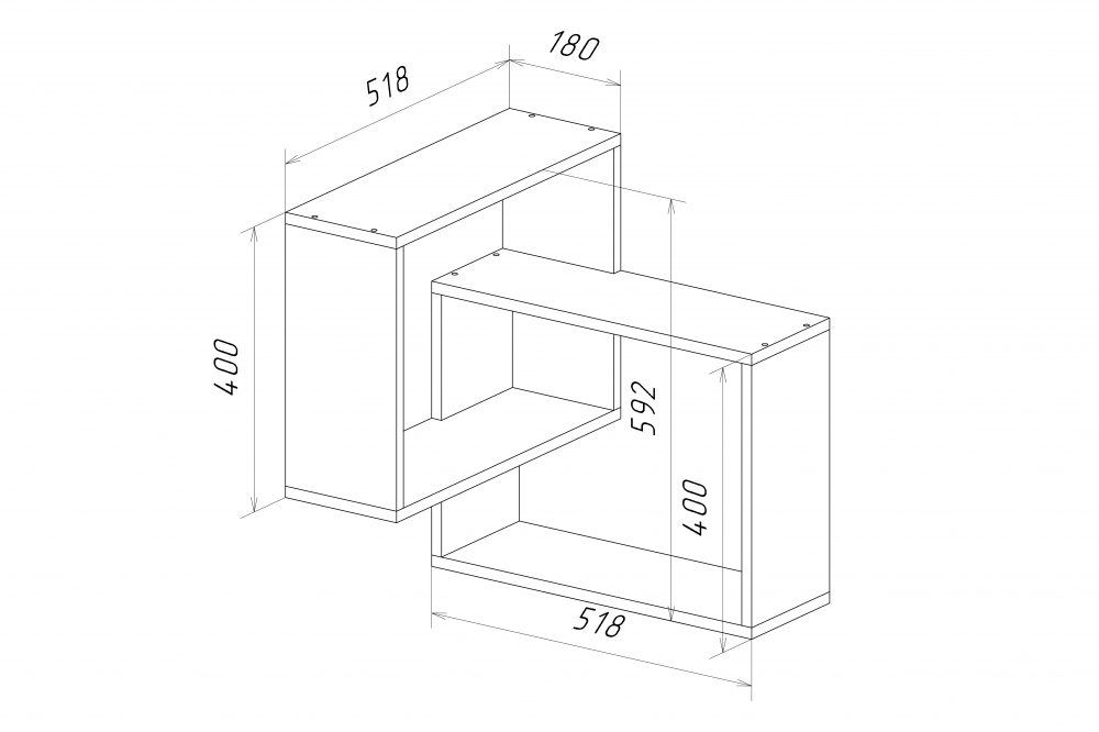 Полка навесная квадрат-2 518х518х592, цвет дуб сонома