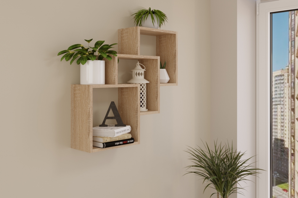 Полка квадрат-3 684х180х684, цвет дуб сонома