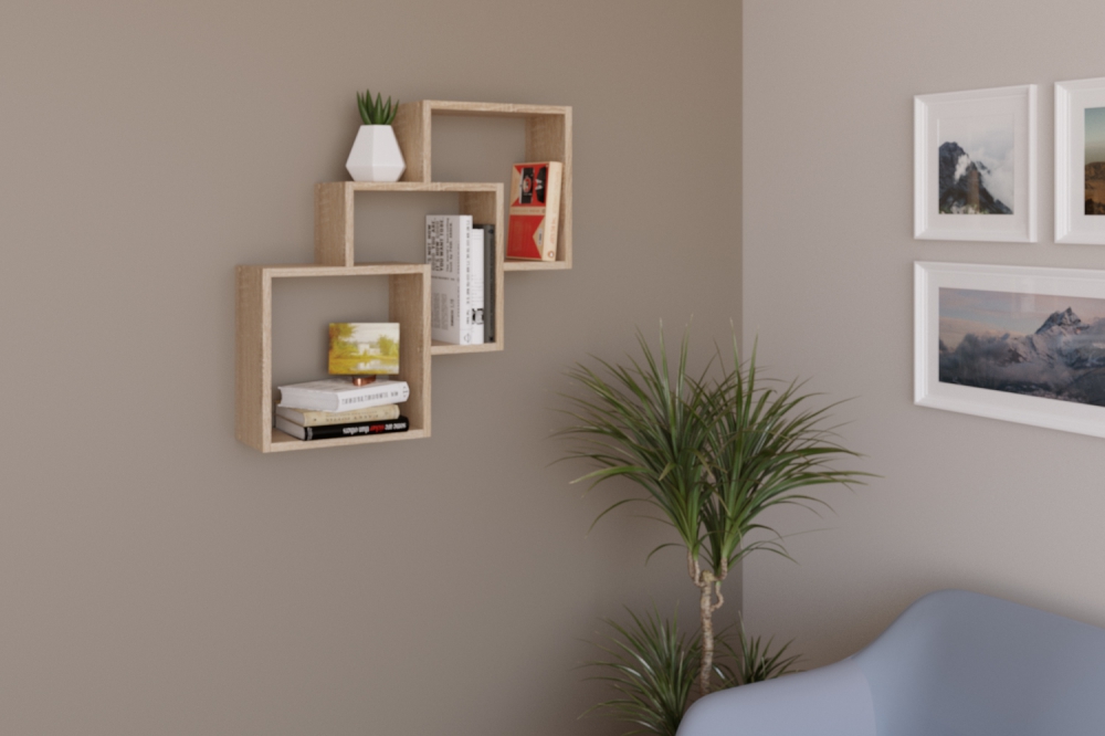 Полка навесная квадрат-3 684х180х684, дуб сонома