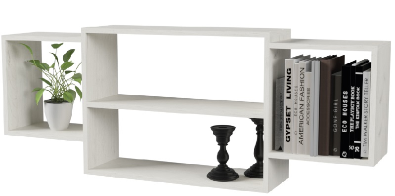 Выигрышно будет смотреться комбинация из нескольких различных полок этого типа.