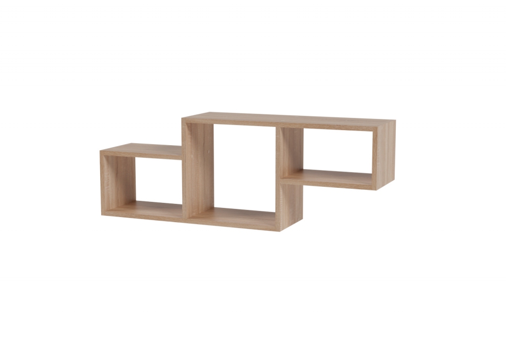 Удобное расположение полочек способствует рациональному размещению книг на большей площади в середине и декоративных предметов в малых квадратах по краям.