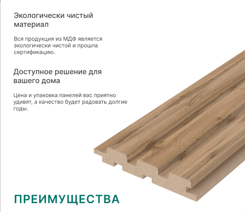 ⁃ Экологичность. Панели изготовлены из натуральных материалов, с заботой о природе;
