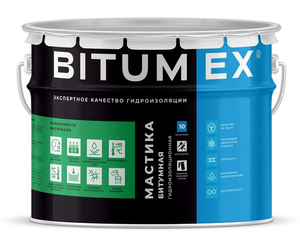 BITUMEX Мастика битумная "Гидроизоляционная" (ведро 10кг) МБ-017 применяется для:
