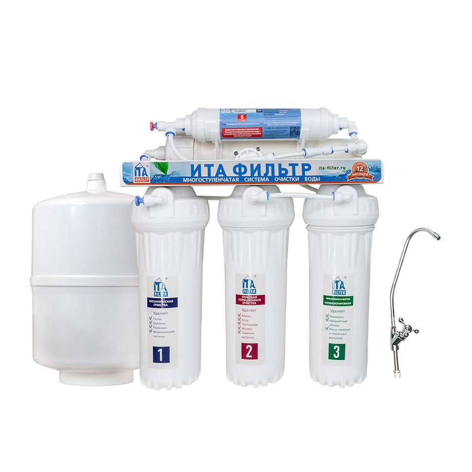 полный комплект для установки и эксплуатации питьевой системы стандарт корпуса 10 дюймов картриджи ИТА Фильтр обладают защитой от обратного выброса фильтрующего материала в воду фитинги быстрой установки пять ступеней очистки воды в питьевой системе механическая очистка более тонкая очистка от фенола, свинца и т.д. улучшенный вкус воды после прохождения воды через питьевую систему тонкая очистка от загрязнений на 99%