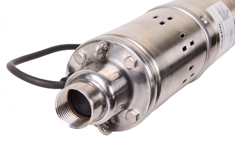 Узкий корпус изготовлен из нержавеющей стали и, благодаря малогабаритности, позволяет выкачивать воду из скважин диаметром от 100 мм.