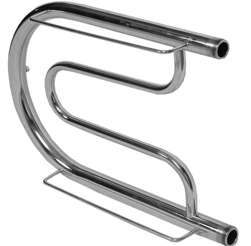 Конструкция изготовлена из нержавеющей стали, отполированной для придания эстетичного вида и защиты от затяжек вещей, которые на данном полотенцесушителе развешаны.