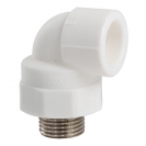 Двухсторонний комбинированный фитинг (полипропиленовый фитинг) для соединения под углом 90° друг к другу полипропиленового трубопровода и компонента инженерной системы с резьбовым подключением.