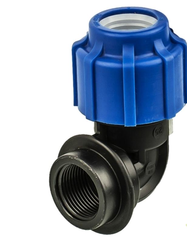 Отвод для полиэтиленовых труб с внутренней резьбой — переходный узел для трубопроводов. Он позволяет соединить изделия с одинаковым диаметром 25 мм и внутренней резьбой 3/4 дюйма. Применяется в устройстве систем питьевого и технического водоснабжения. Также угловой отвод можно купить для использования в системах полива в сельском и частном хозяйстве. Устанавливается он в местах поворота трубопровода, образуя плотные и герметичные соединения. Изделие изготовлено из прочного пластика, поэтому не п одвергается коррозии.